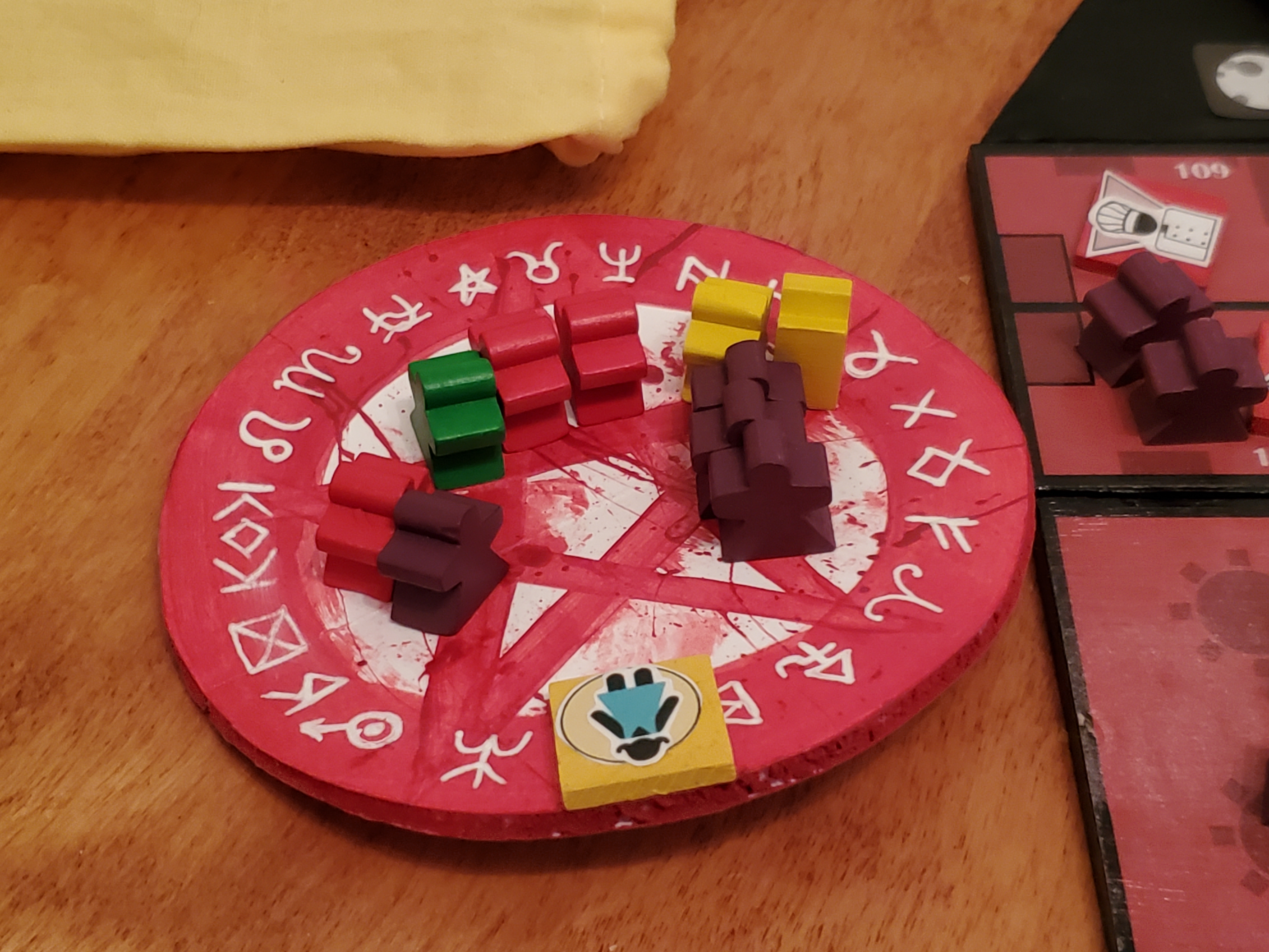 Since we were already doing a game of majority on the board, then why not incentivize players to get some items in the circle with their fallen booples? And thus came the betting system. With collectibles on the sacrificial circle, players now had the opportunity to use the booples the current player booted on that turn and bet to get a tile they wanted.